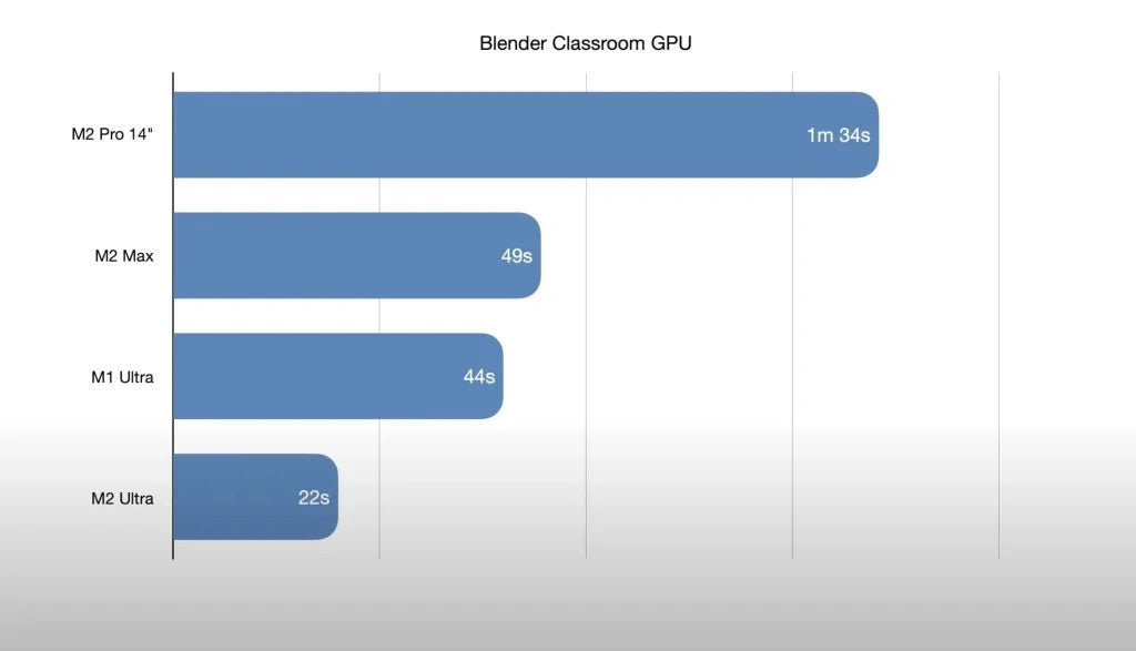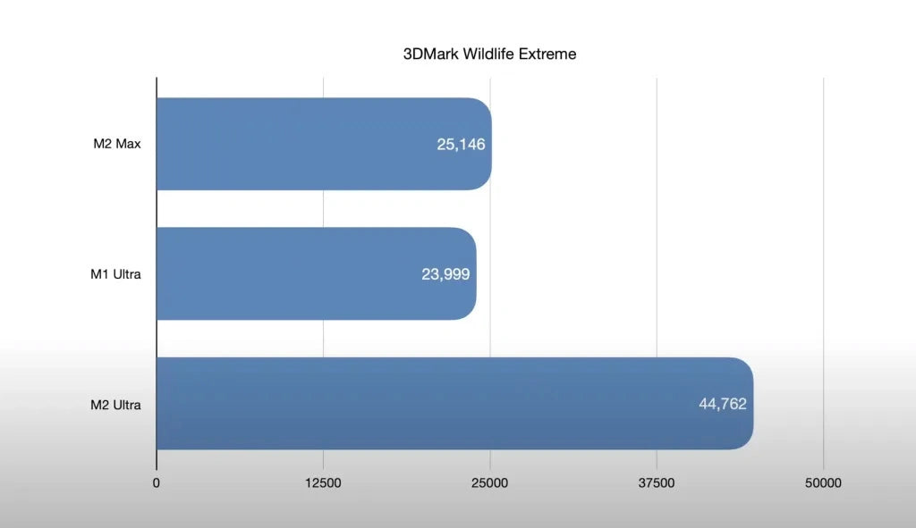 After testing GPU intensive applications such as Blender 3D and 3DMark, the performance of the M2 Ultra was twice that of the M2 Max, and in Final Cut Pro testing, its export speed doubled. The test results also show that the GPU performance of the M2 Ultra is twice that of the M1 Ultra.