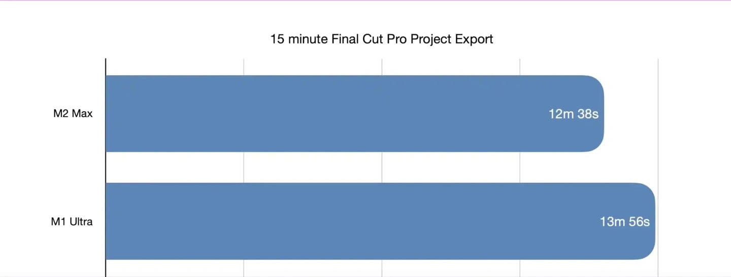 The test results show that the graphics performance of the M2 Max chip is better than that of the M1 Ultra, but the M1 Ultra has more CPU cores and is more capable of handling CPU heavy tasks.